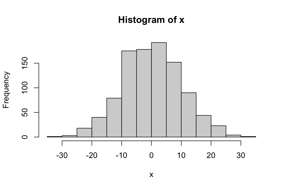 # Draw 1000 values from a normal distribution with mean 0 and SD 10
