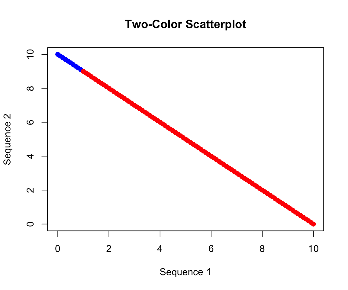 plot(seq_1, seq_2, xlab = "Sequence 1", ylab = "Sequence 2",