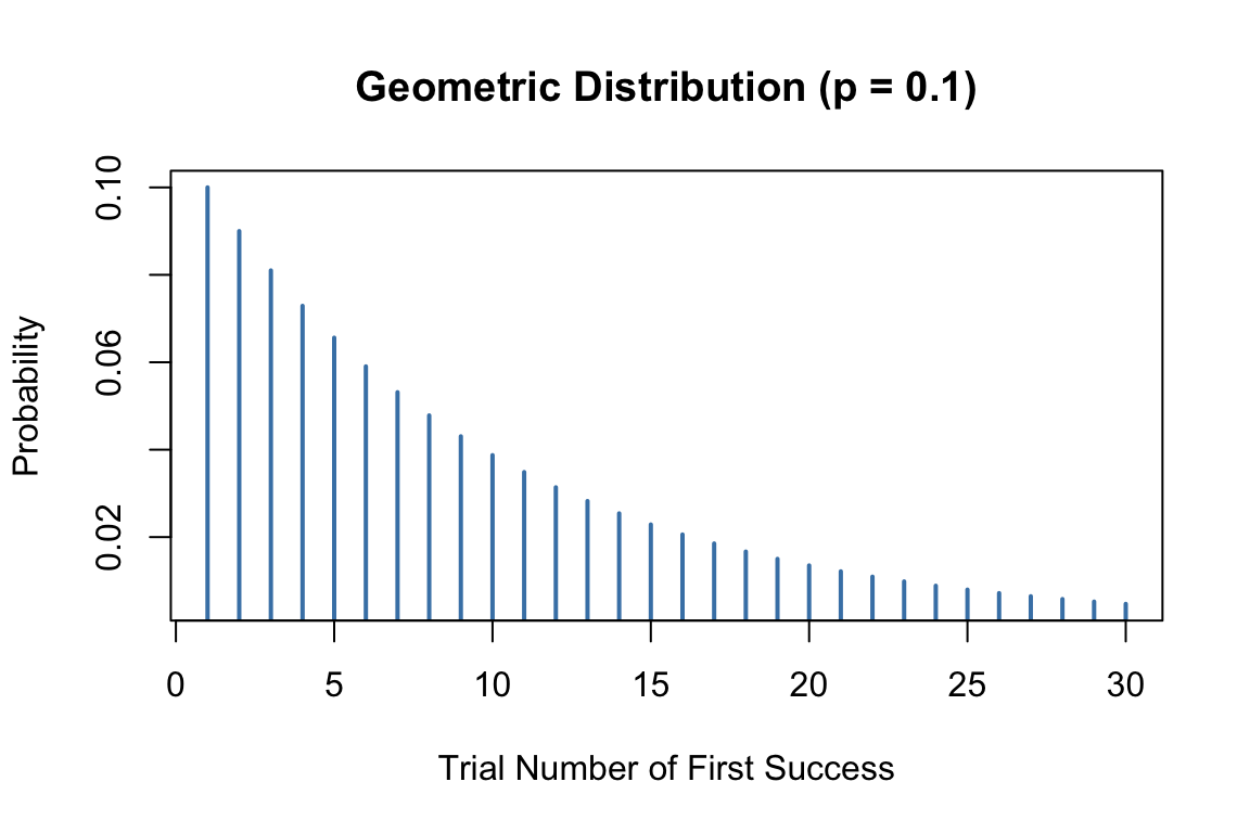 main = "Geometric Distribution (p = 0.1)")