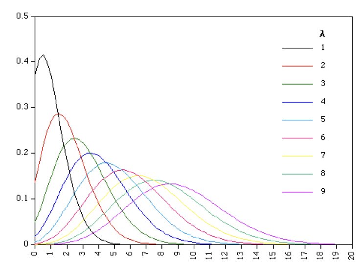 # Show Poisson distributions with different lambda values