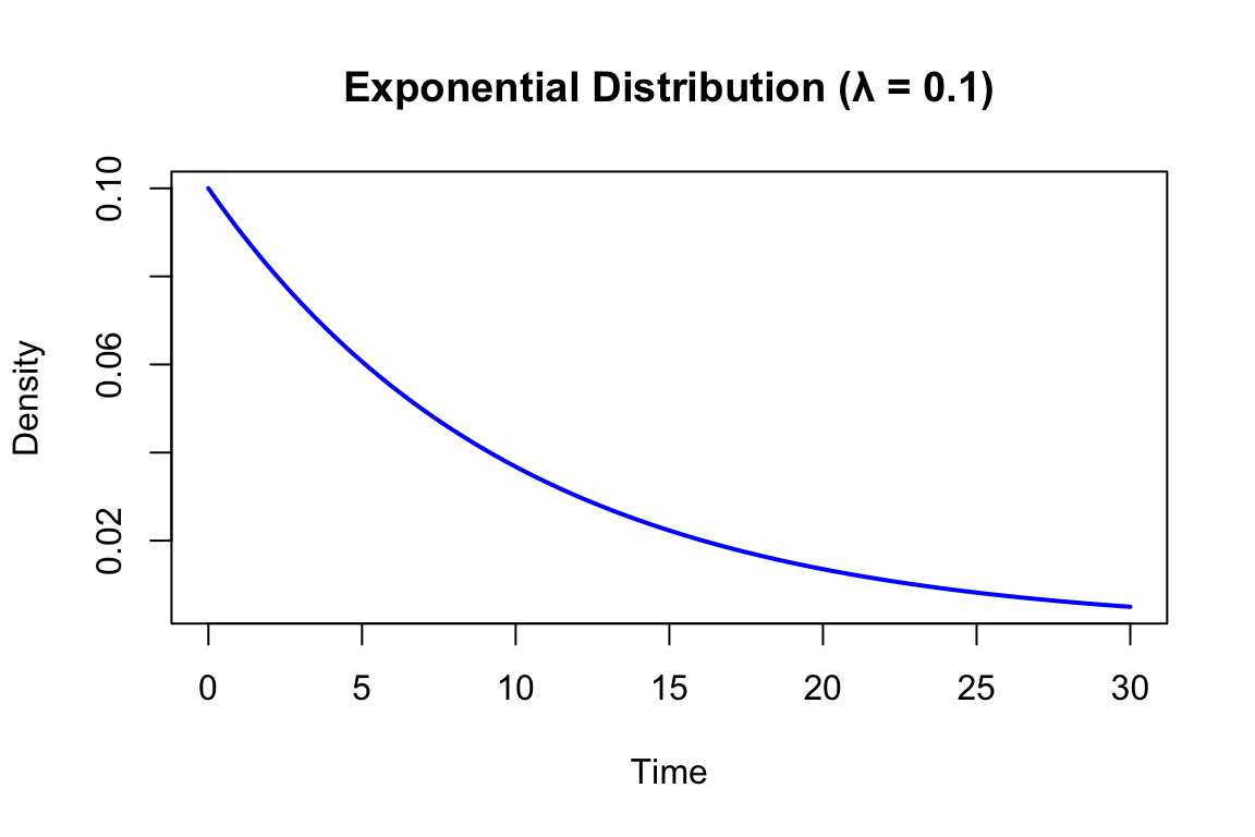 plot(x, dexp(x, rate = 0.1), type = "l", lwd = 2, col = "blue",