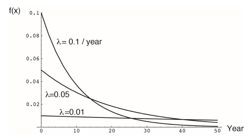 \[f(x) = \lambda e^{-\lambda x} \quad \text{for } x \geq 0\]