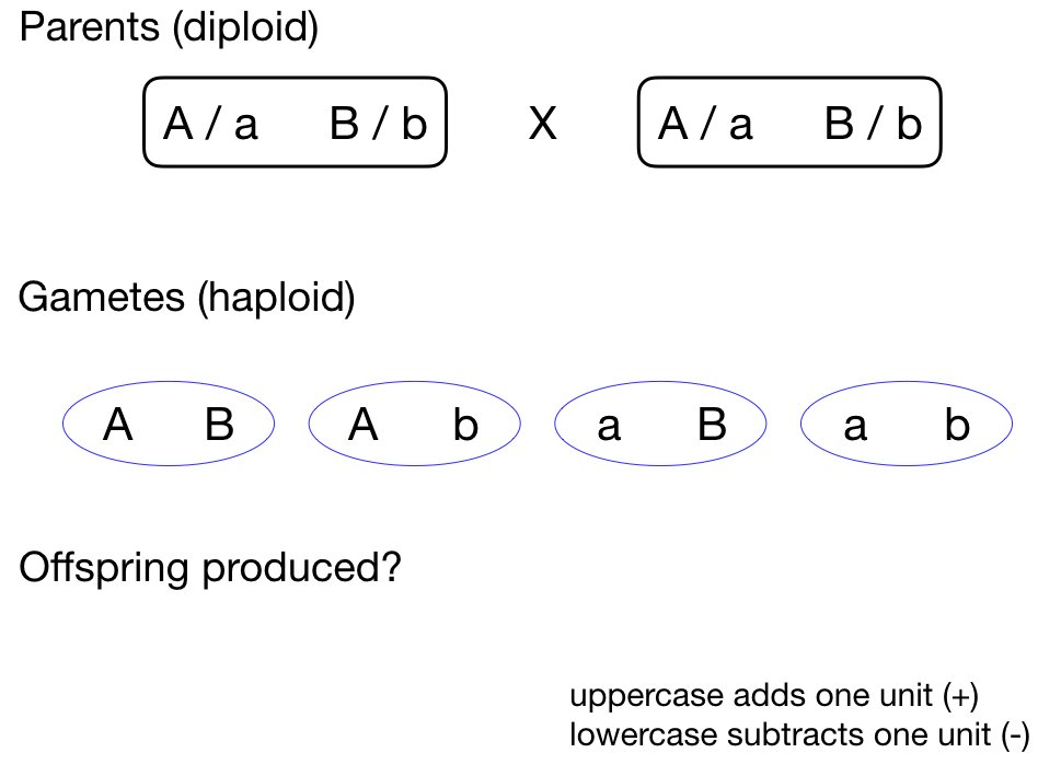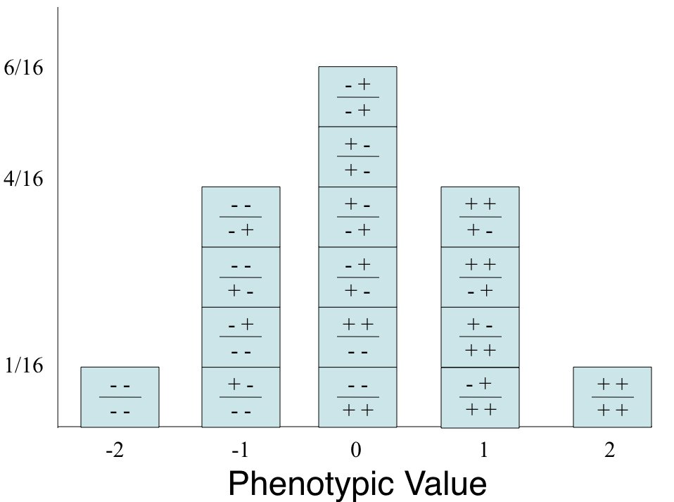 Consider a trait influenced by multiple genes. If we have many loci, each with a small additive effect, the distribution of trait values in a population will approximate a normal distribution—even if the contribution at each locus follows a simple Mendelian pattern.