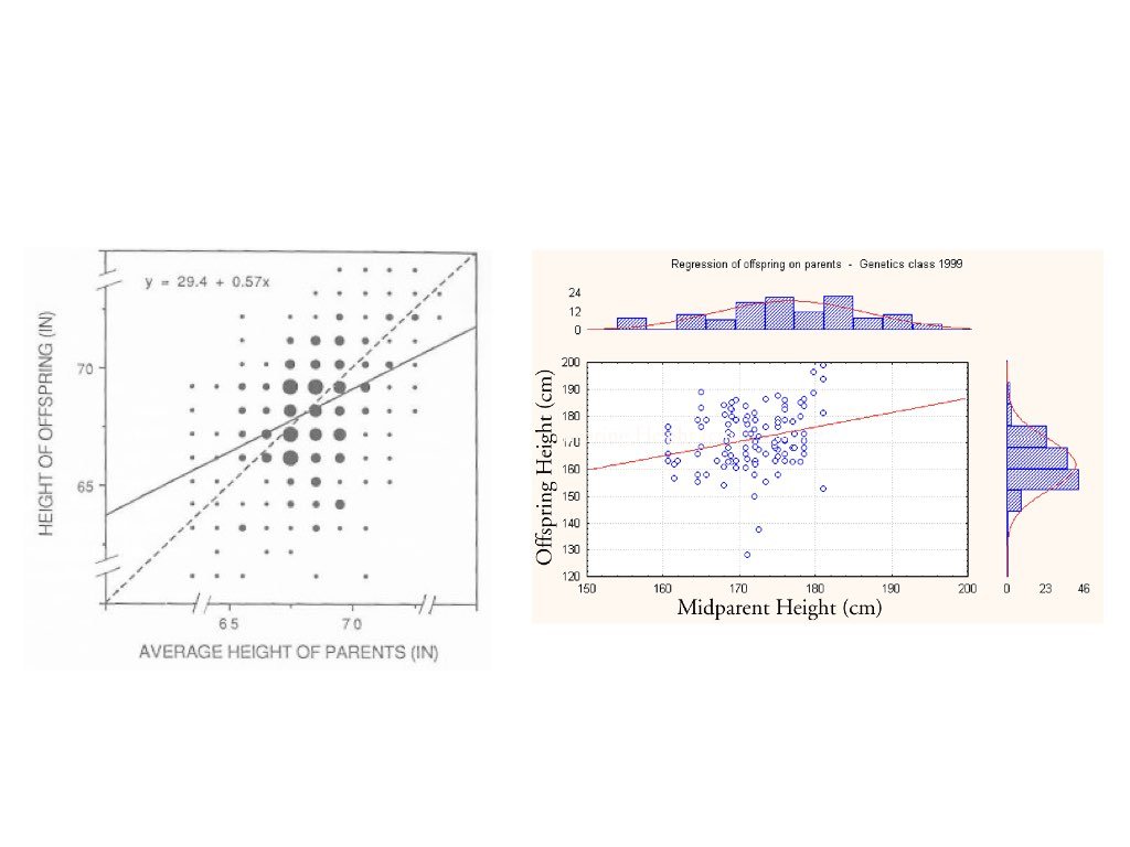 Figure 23.2: Historical illustration of Galton’s regression to the mean, showing how offspring heights regress toward the population mean