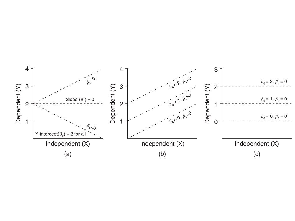 Here \(\beta_0\) is the intercept (the expected value of Y when X equals zero), \(\beta_1\) is the slope (how much Y changes for a one-unit change in X), and \(\epsilon_i\) represents the random error—the part of Y not explained by X.