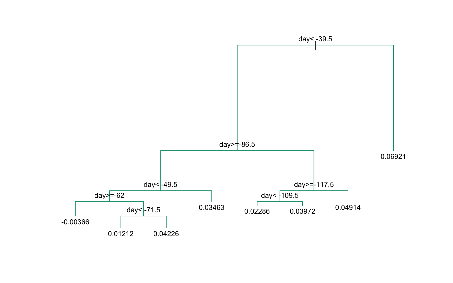 Use rpart to fit a regression tree. Plot the tree.