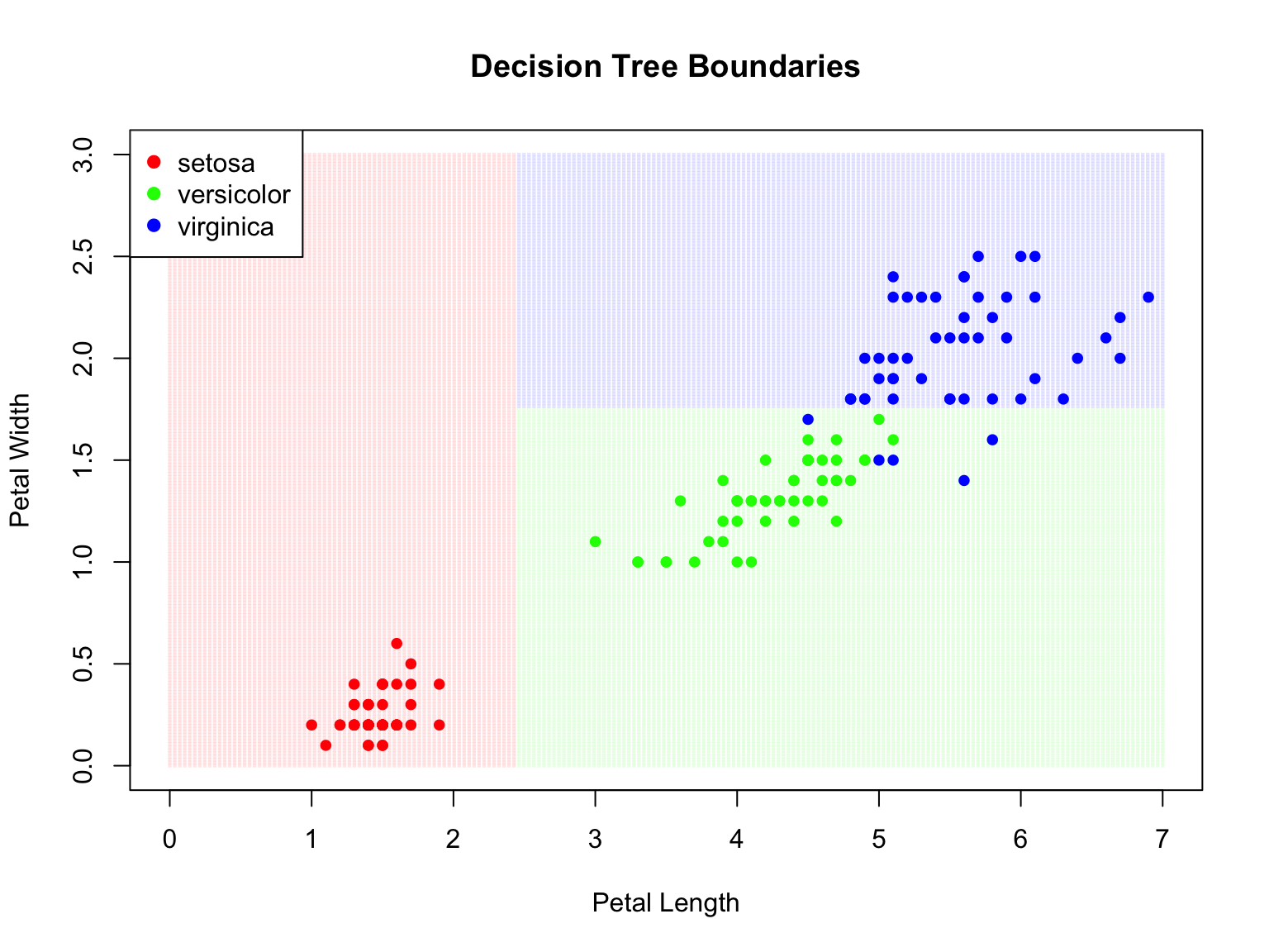 This is exactly what a decision tree learns from data—a flow chart of yes/no questions that partition the feature space into regions, each assigned to a single class.