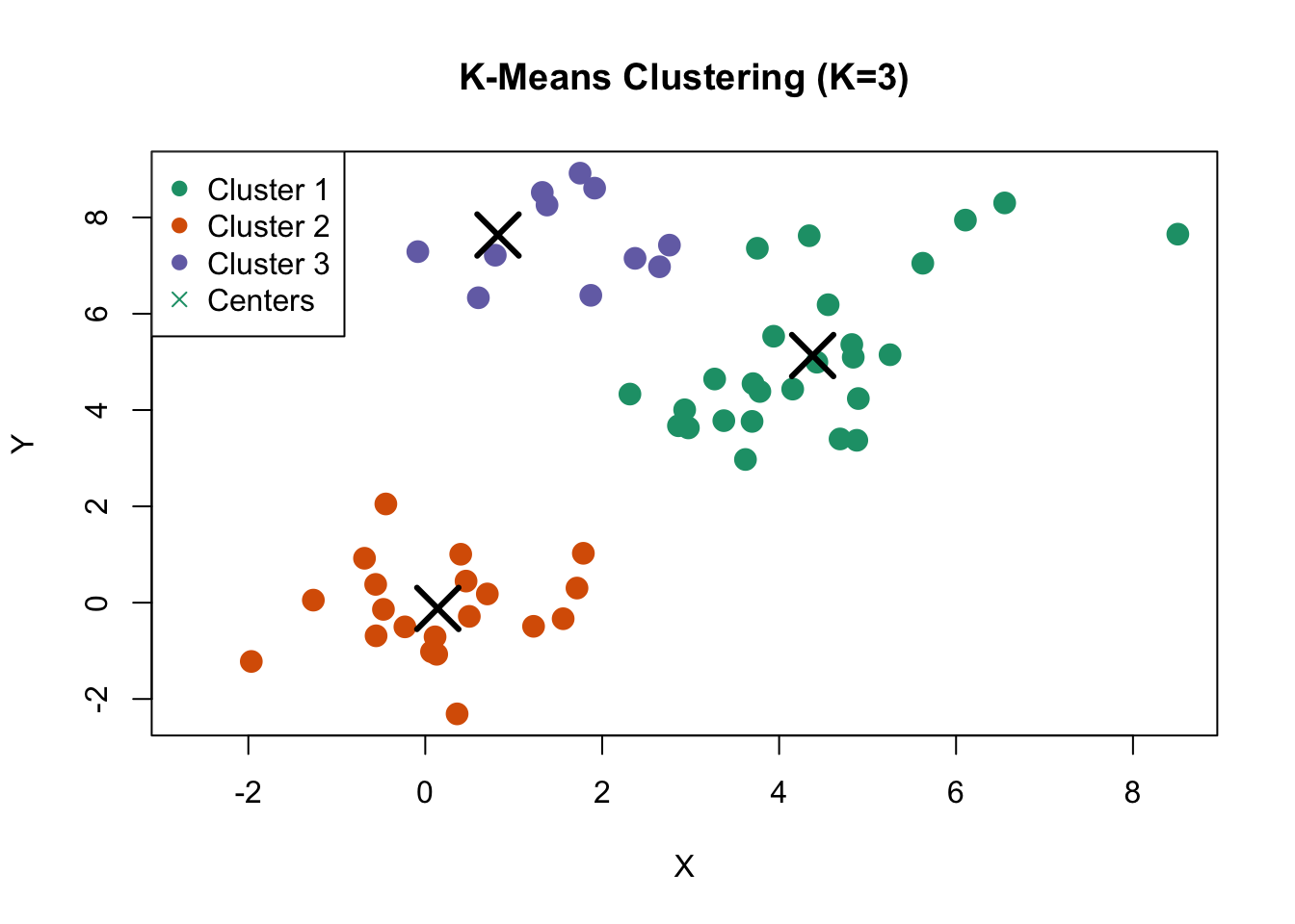 Figure 36.3: K-means clustering on simulated data with three natural clusters