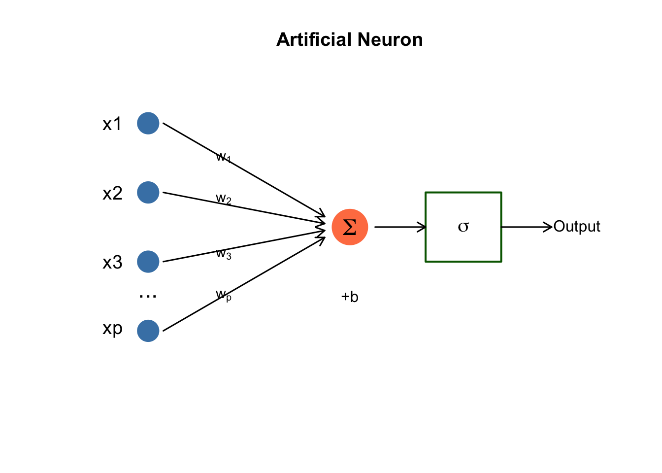 The basic building block is an artificial neuron (or unit), inspired loosely by biological neurons: