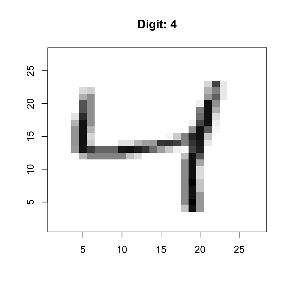 xlab = "", ylab = "", main = paste("Digit:", y[3]))