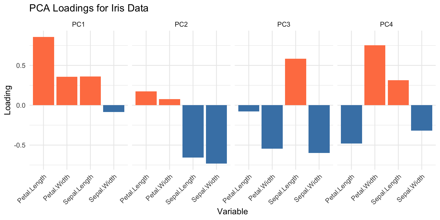 ggplot(loadings_df, aes(x = Variable, y = Loading, fill = Loading > 0)) +