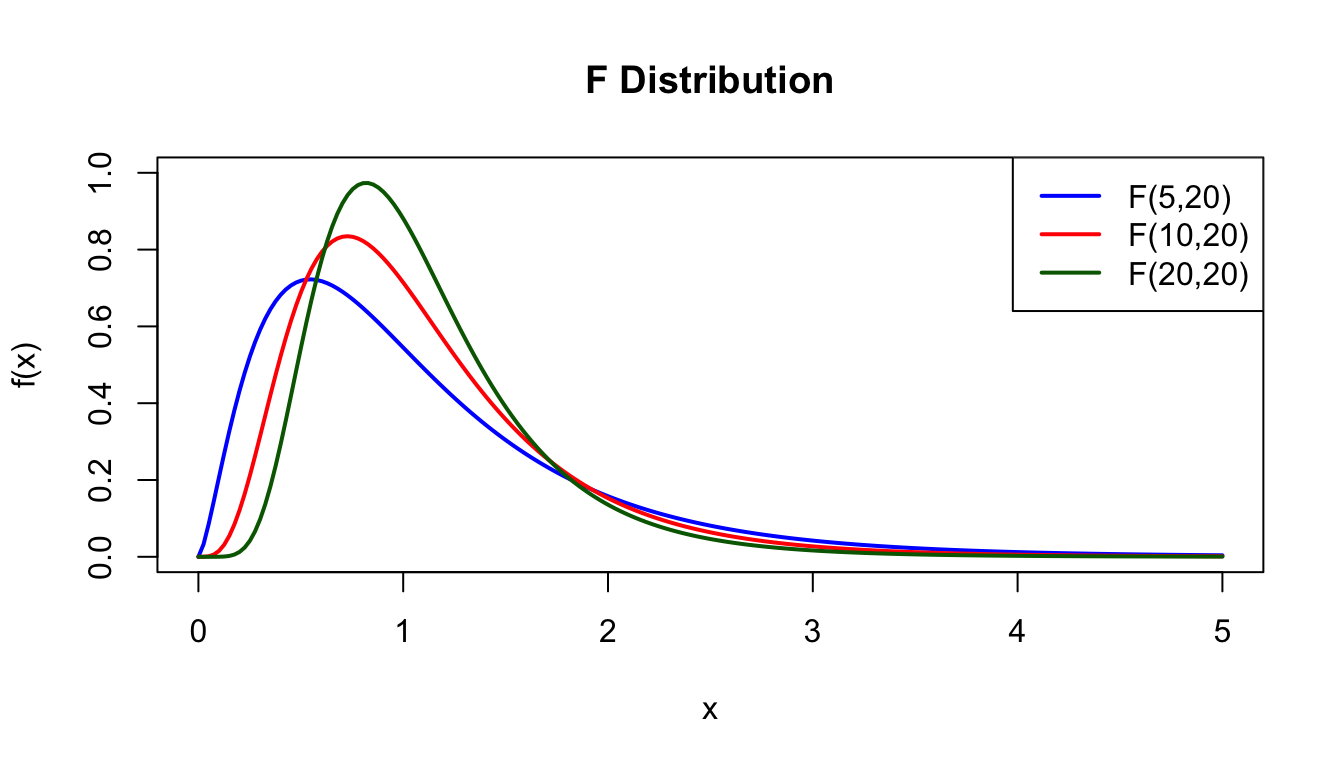 Figure 50.14: F distribution for different numerator and denominator degrees of freedom